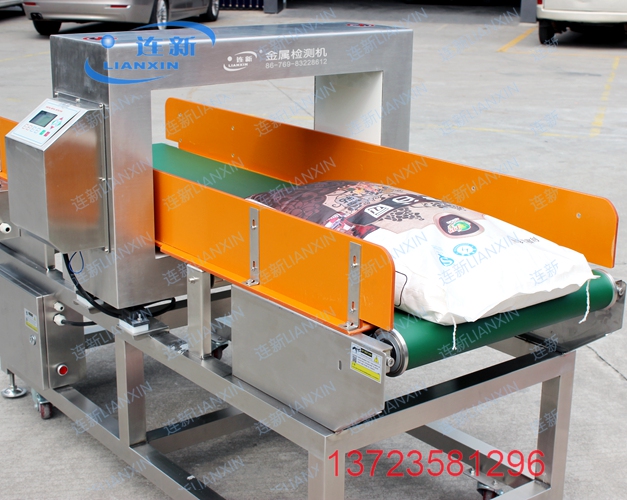 連之新DLM-509Y2010型金屬檢測機使用現(xiàn)場,有金屬的物品可以做到自動檢測并剔除。
